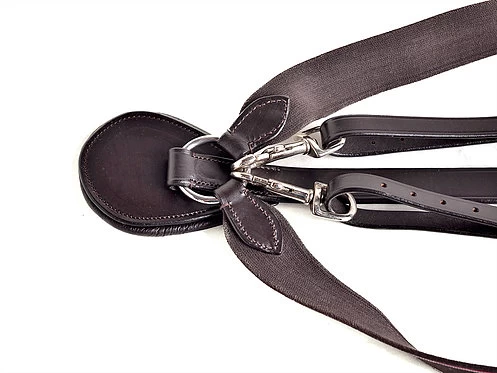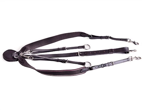 This V Check Breastplate comes complete with adjustable running martingale attachment, to help keep the reins aligned. The elastic sides allow for more freedom of movement. The elastic matches the colour of the leather with a subtle red & white stripe.
