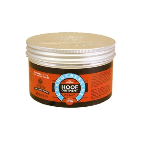 A unique, traditional formula used and trusted for generations. Massage into the coronet band to promote healthy hoof growth. Maintains optimum hoof condition and aids re-structuring & growth of the hoof. Application by hand or with a toothbrush stimulates keratin producing cells. Hoof Ointment also aids re-growth of hair after rubs or scarring.
