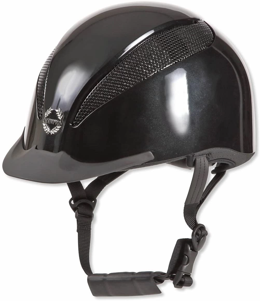 A high-quality helmet is an essential bit of kit when riding. The Champion Air Tech Deluxe Helmet is a stylish low-profile helmet that’s lightweight with an injection moulded ABS shell. Triple mesh venting provides excellent airflow, whilst a removable crown padding ensures a comfortable fit whilst being breathable. Finished with a fully adjustable four point webbing harness for a secure fit. Available in Metallic Black, Black Silk or Oyster Metallic.