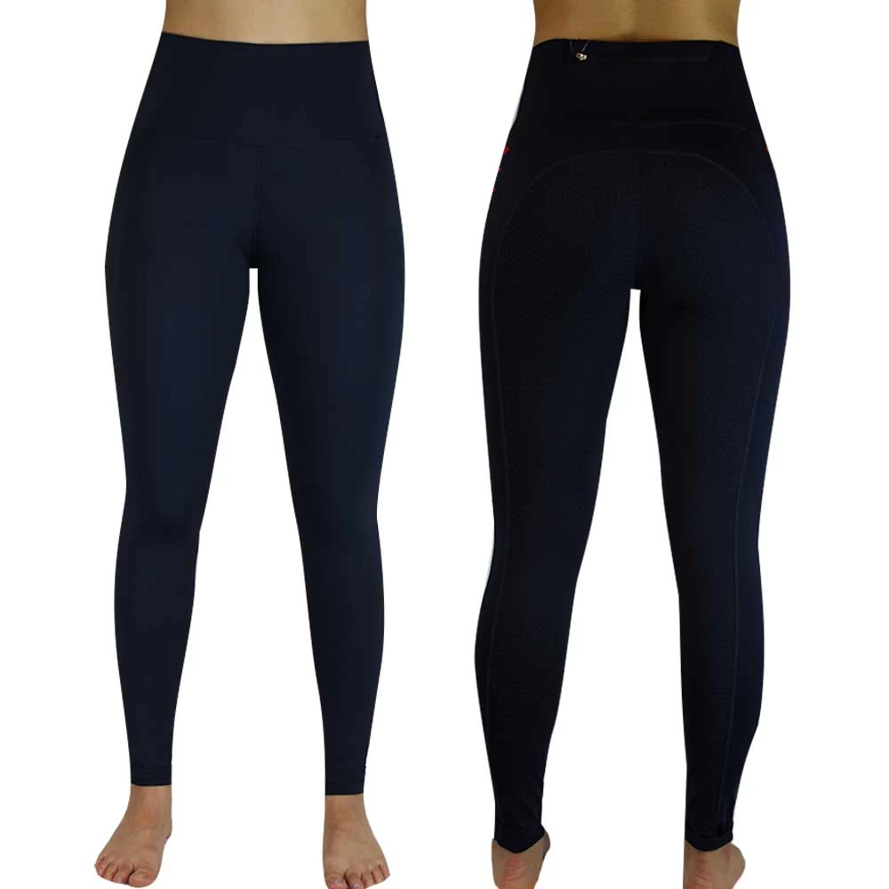 Eileen Douglas Amazon riding tights are soft, lightweight and practical. They are high waisted tights with a phone pocket in the back of the waistband. The hexagonal full silicon seat offers full grip and security. Finished off with stylish lazer cut slits on the side of each thigh with a red material underneath for extra effect.