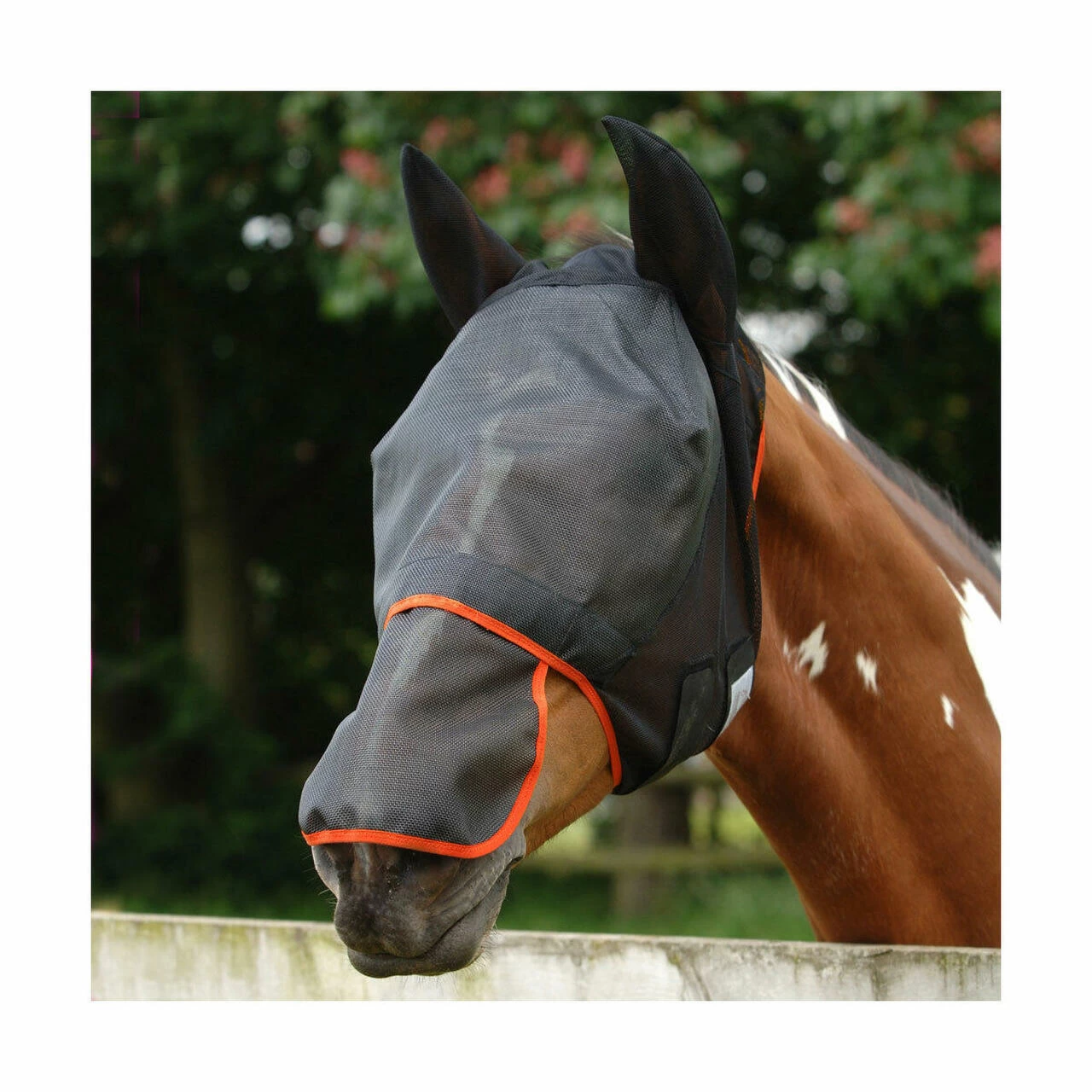 A full face fly mask that combines the best of protection against sun and insects, with carefully designed features to provide exceptional comfort for the horse. Protects from sunburn by blocking over 70% of the sun’s rays. Soft padding at brow and noseband to prevent rubbing. Several darts ensure that the mask sits well clear of the horse’s eyes, face and eyelashes maximising on comfort. Detachable nose piece. Long lasting and well fitting. Perfect for sensitive horses or those in high midge and fly infested areas. With 1 year product guarantee.