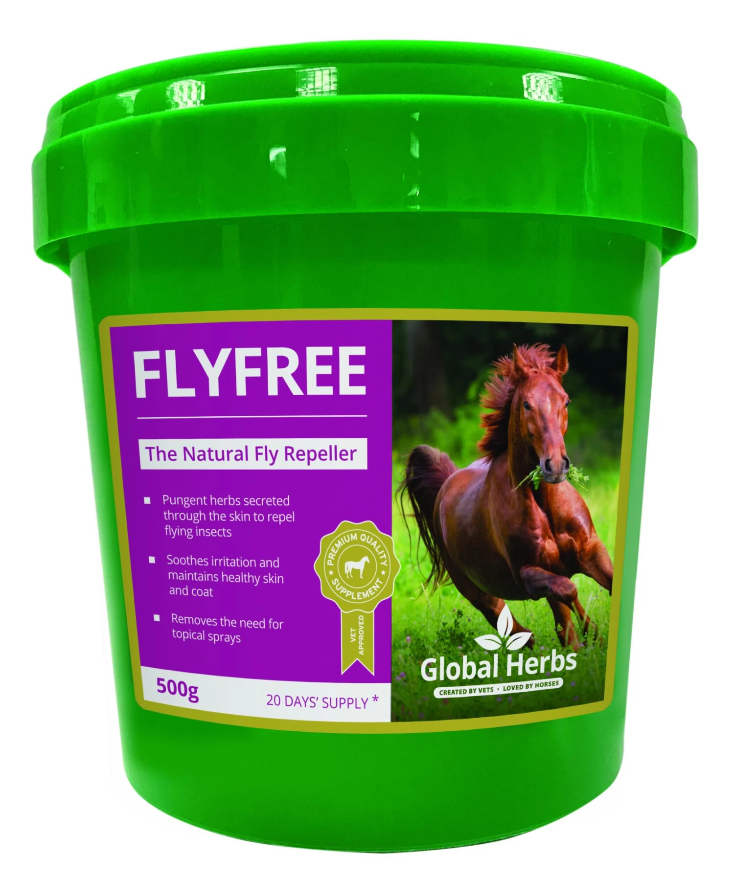 This very unique and powerful supplement helps your horse tolerate flies and midges and reduces fly worry dramatically. You will quickly see your horse looks different and calm. FlyFree also helps sooth insect bites, runny eyes and soreness and maintains a health glossy coat. This indispensable summer formula provides