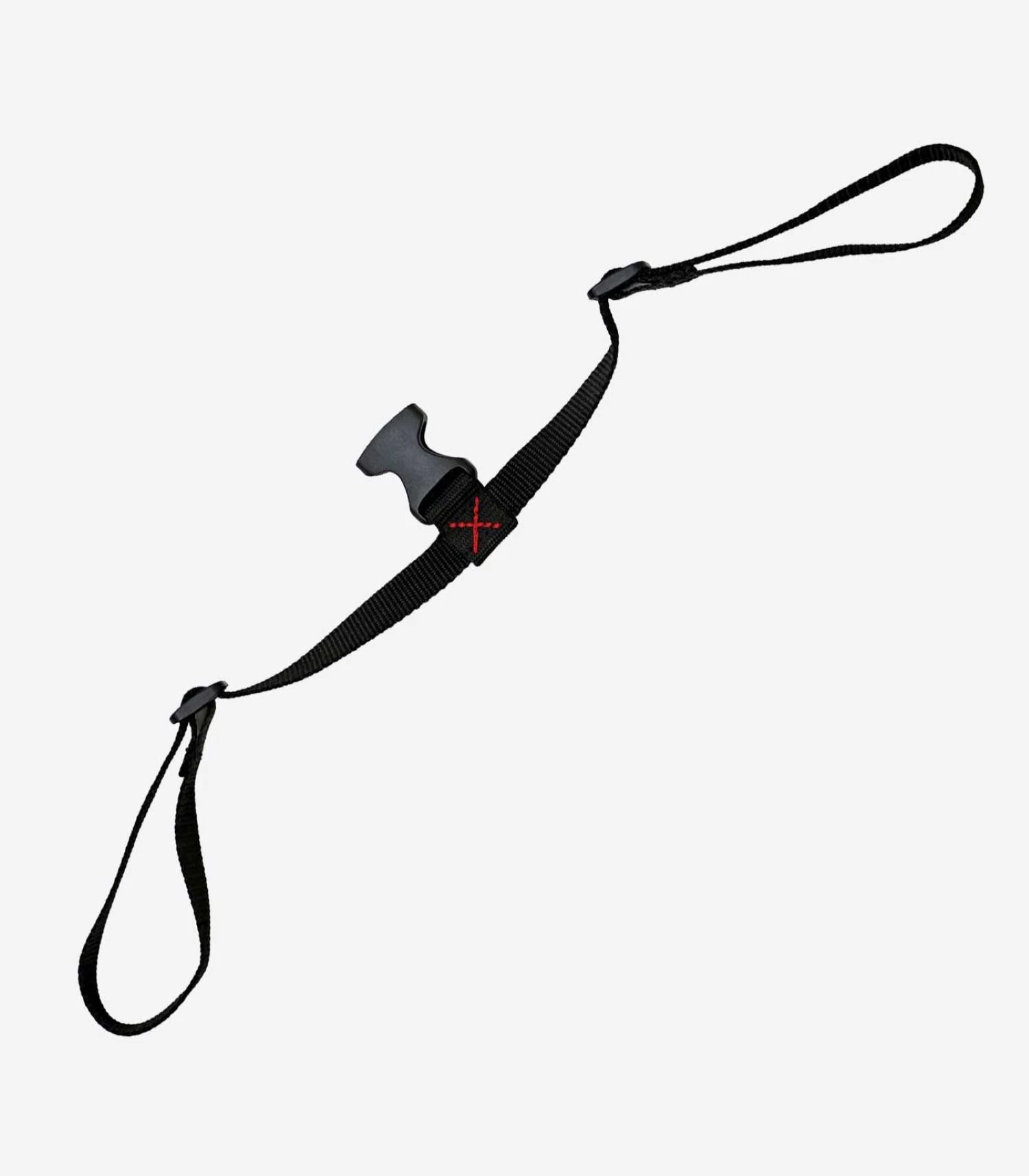 Adjustable saddle strap without a central clip. This is compatible with older style lanyards with a loop.