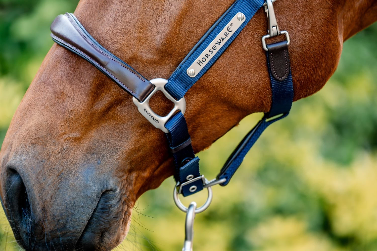 The Horseware Signature Competition Headcollar has an anatomically designed headpiece which avoids pressure points in this sensitive area.The soft leather padding along the headpiece, noseband, cheeks and throat lash ensures a comfortable fit and avoids rubbing.Buckles to the left and right of the Headcollar, and under the chin gives flexibility for different sized heads.Reversable branded metal name plate that can be used for personalization.