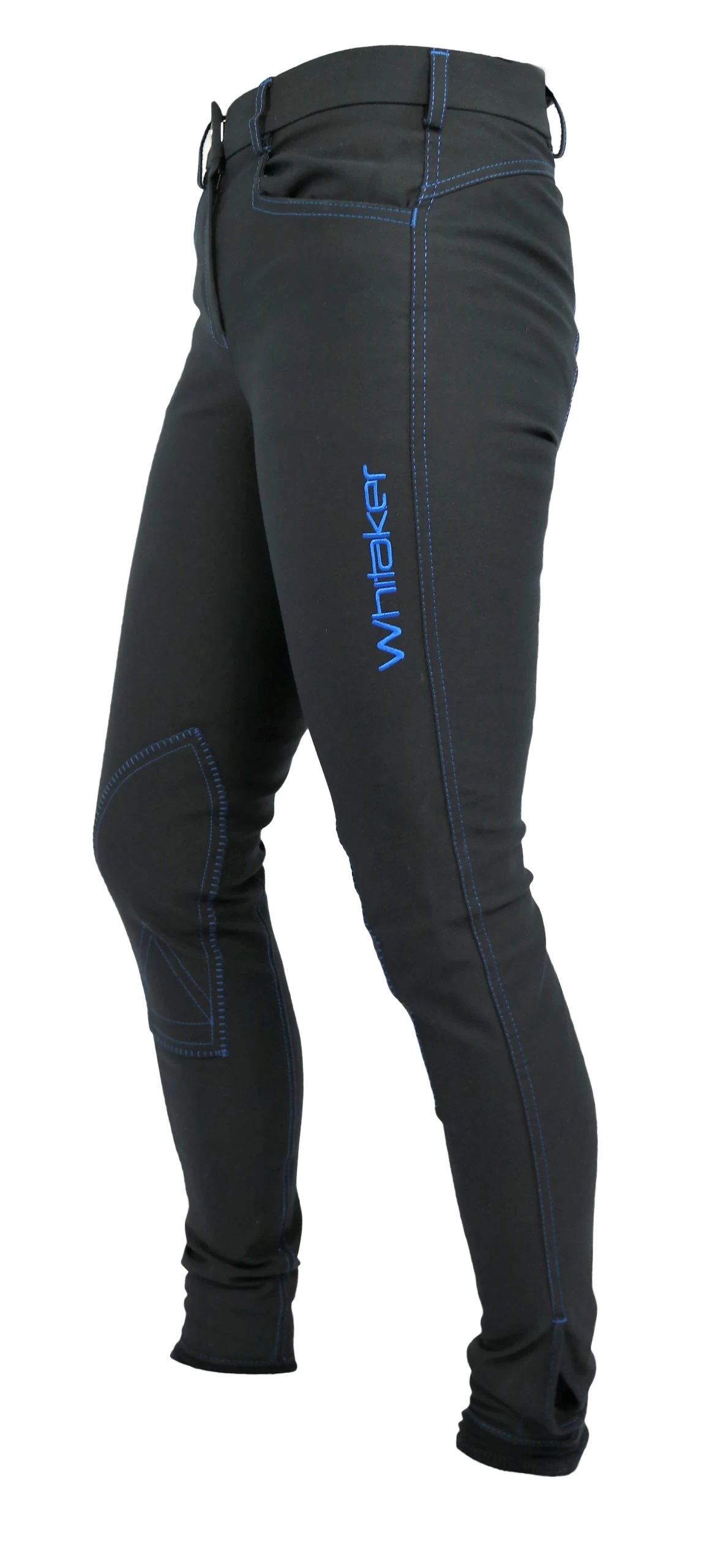 – White Whitaker embroidery along the leg and back pocket