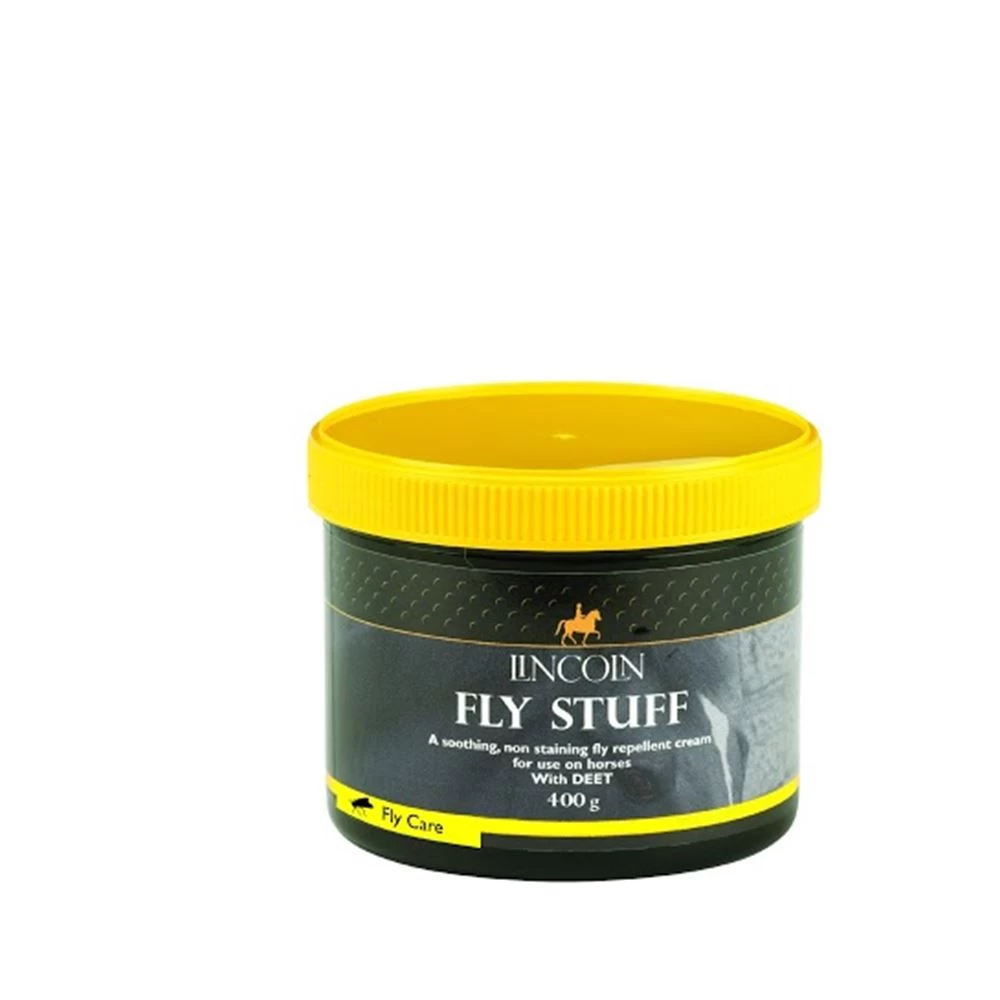 The Lincoln fly stuff is a soothing, non staining version of the Lincoln Summer Fly Cream. The Lincoln fly stuff was developed following requests received from caring horse owners who have successfully used our well established Summer Fly Cream (yellow fly cream). The original Lincoln Summer Fly cream has been used for decades by farmers to treat and further prevent fly strike on their livestock. This brilliant new improvement, the Lincoln fly stuff contains a combination of powerful antibacterial agents to optimise healing together with DEET to prevent further fly worry.