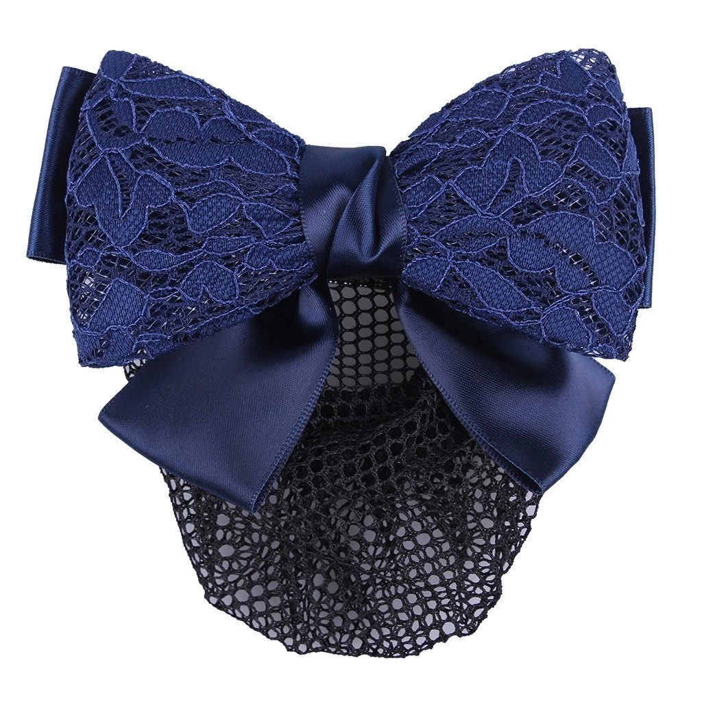 Hair bow with fine mesh net and double bow. The upper bow is made of lace and the lower one of satin. The hairnet can be fastened with a barrette clip.